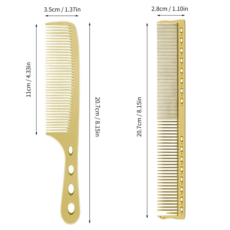 - 2.Space Aluminum:Made of Space Aluminum, eco‑friendly, no harm to hair and scalp.not easy to break, lightweight and durable can serve for a long time use. Good functions: these styling combs are durable and flexible, the sturdy teeth of cutting comb could avoid pulling, tangling or damaging hair, easy to hold and operate, can reduce the pressure of wrists