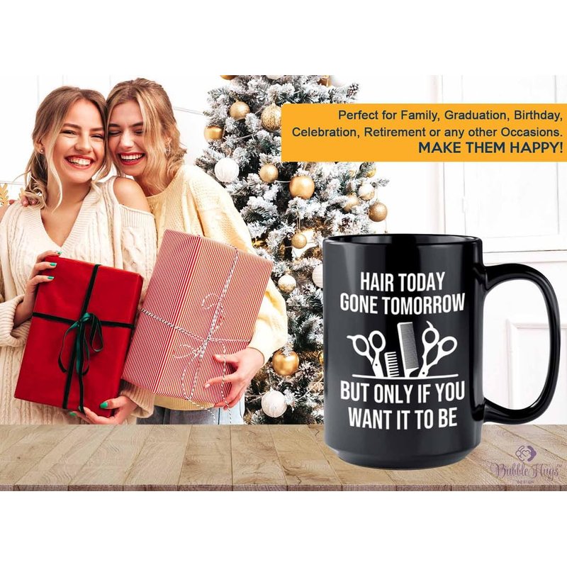 Hair Stylist Coffee Mug 15oz Black - Hair Today Gone Tomorrow - Hair Stylist Gift Beautician Hairdresser Salon Barber Hairdo Cosmetoloist Scissors Blower