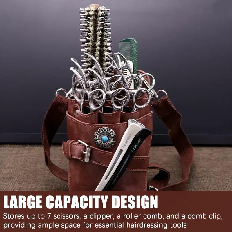 - 【Large Capacity for Hairdressing Tools】This tool bag has a large capacity and a humanized design, making it suitable for storing up to 7 scissors, a clipper, a roller comb, and a comb clip. It provides ample space to organize and carry your essential hairdressing tools.
