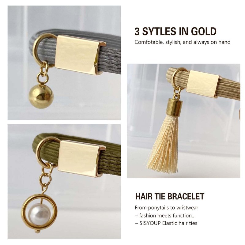 • HAIR TIES THAT LOOK LIKE BRACELETS: Sisyoup elastic hair ties can be worn as both hair accessories and trendy bracelets. The metal charms design adds an elegant flair to your wrist. Whether you need a reliable hair tie or want to rock a trendy bracelet, our fancy Hair Tie Bracelet set has everything you need. Be creative, be chic