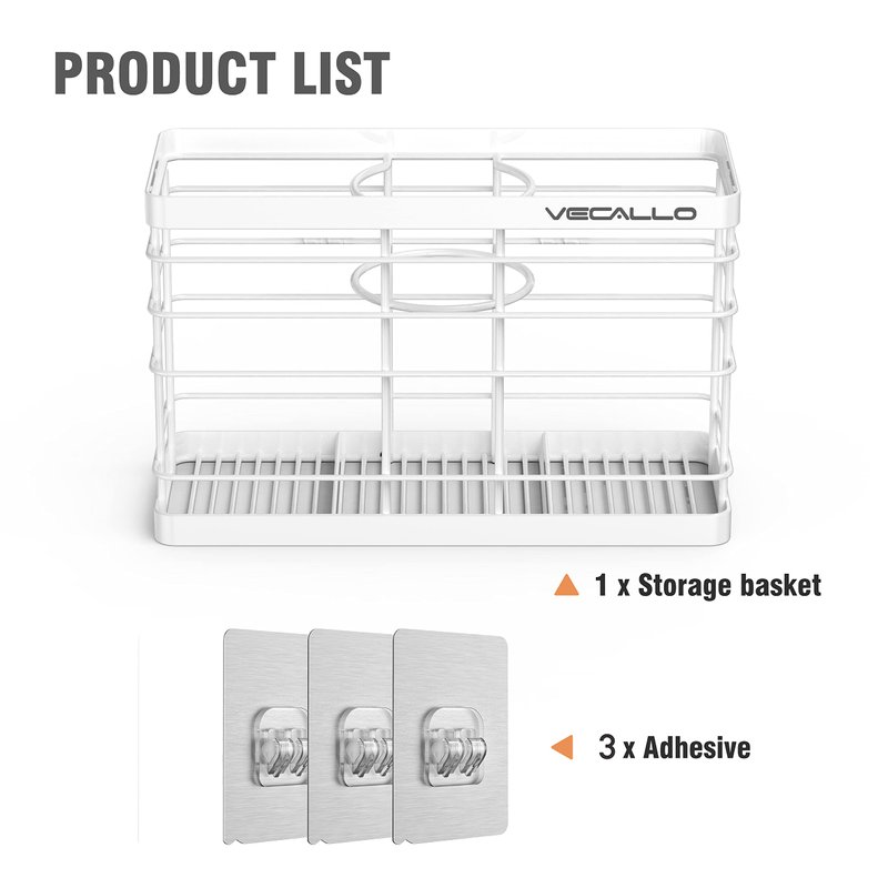 Works on a variety of surfaces. Ideal for bathroom, cabinet, kitchen to organize your space in neat. Powerful adhesive makes sure that it attaches surface firmly. The hair tool organizer is made of stainless steel material which keeps the quality and beauty of the product.