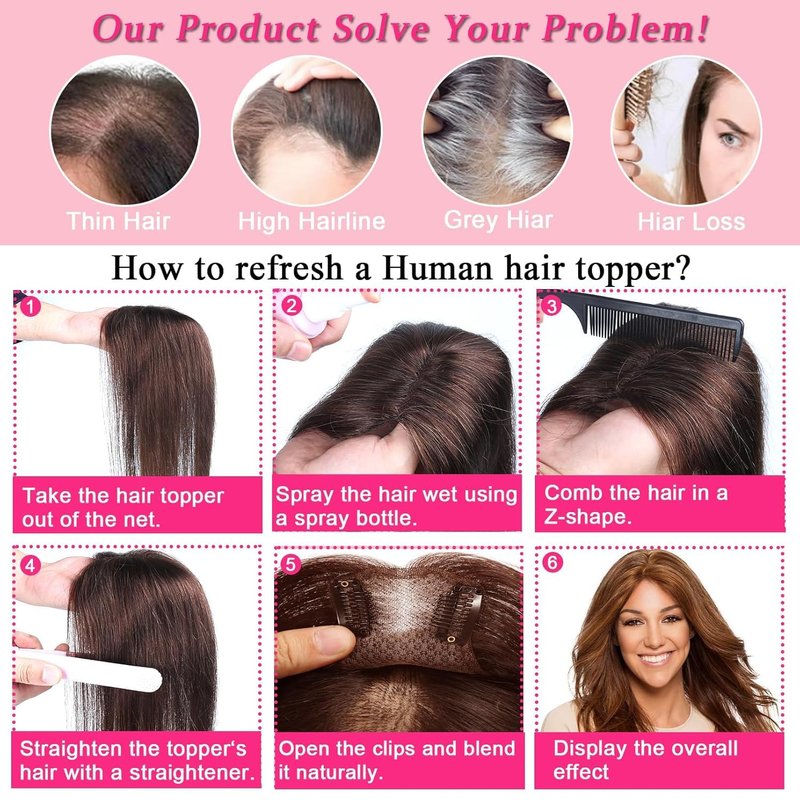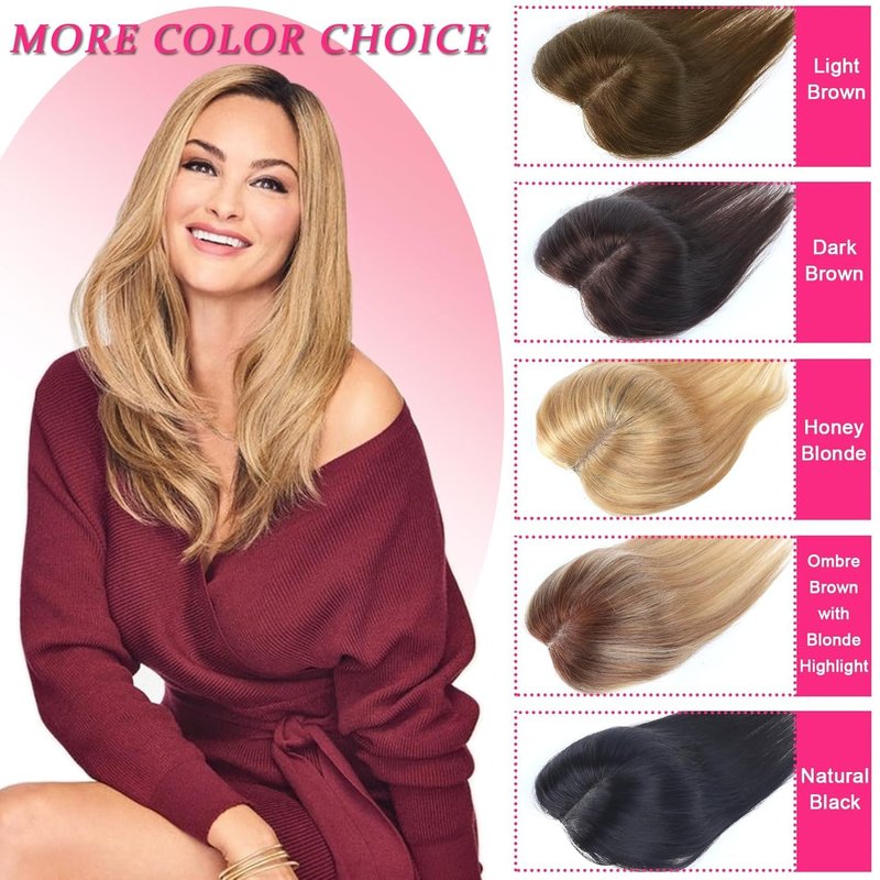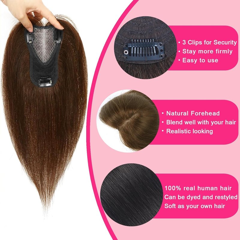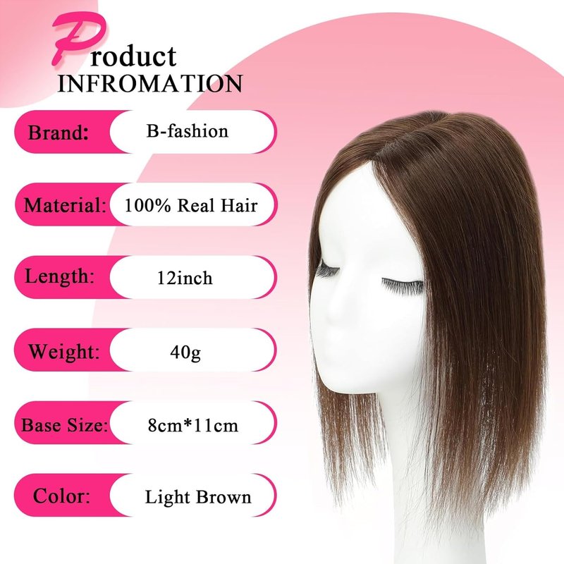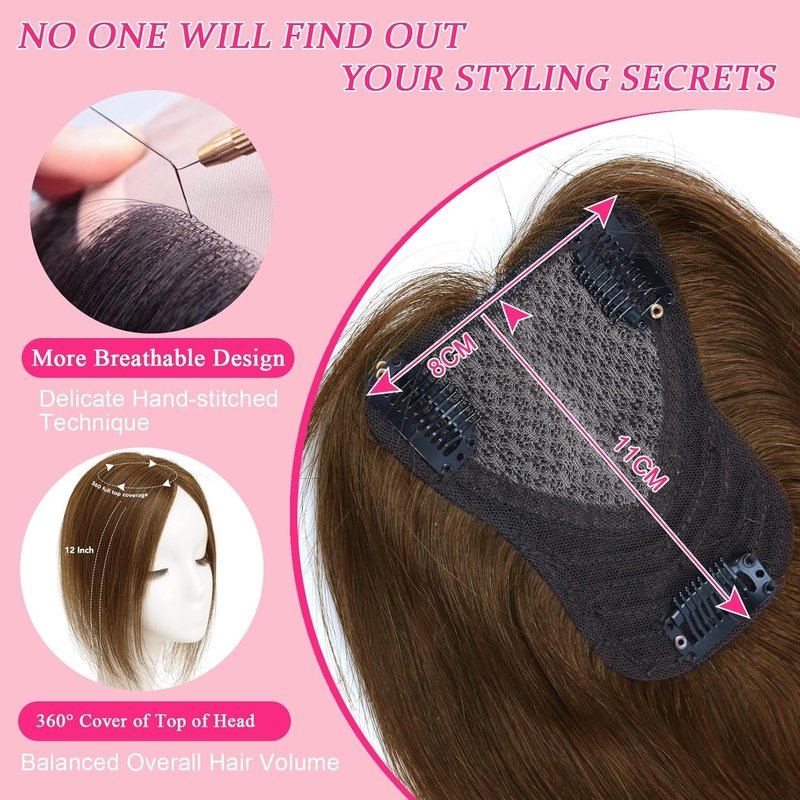 Hair Toppers for Women Real Human Hair Extensions Clip in Bangs 100 Percent Human Hair Topper with Thinning Hair for Daily 8x11cm Hand-Woven Area Coverage Swiss Lace Natural Hairpiece Light Brown