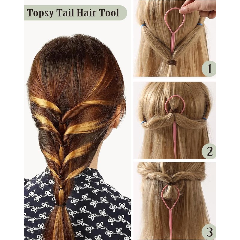 - TOPSY TAIL HAIR HAIR LOOP PRODUCTS: Hair loop styling tool flexible & strong, hard, loop end is bendable It will only bend enough to pull your ponytail through and then instantly pops back to its original shape, everyday easy creat cute styling French braids for you.