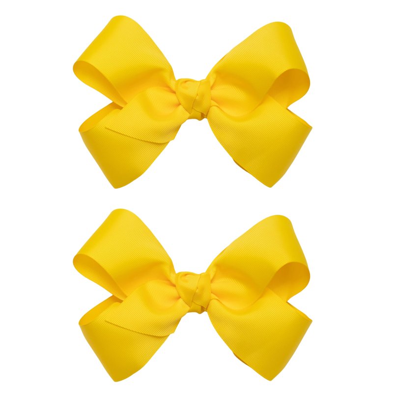 HAIRBOWS Girls' 2 Pack of Grosgrain Hair Bows with Knot Wrap Center on Hair Clips, All Ages and Hair Types, 6 Inch Bows, Yellow