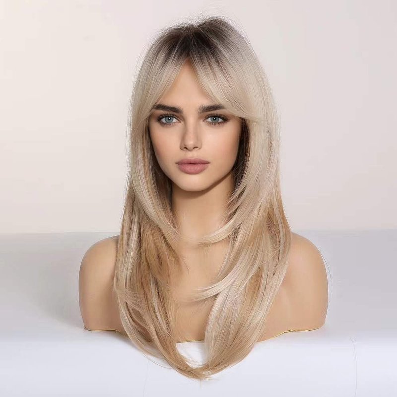 HAIRCUBE Blonde Wigs Long Curly Wigs Shoulder Length Heat Resistant Synthetic Wigs for Women with Bangs