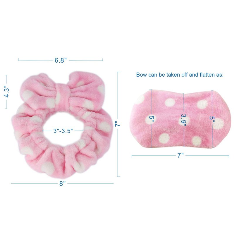 Material: Extraordinary Soft Caroset. Headband Size: 5.1" X 8.6"; Bowknot Size: 4.9" X 7". Elastic and does stretch to size that it can support all types, styles and lengths of hair, covering your ear and holding back your hair to middle of your head. Enjoy 2 ways for using: Hold Up & Wrap Up. Big bow on top that makes it adorable and charming compared to a towel or regular headband. Single unit inside zippered bag for easy store. Wash with water. Recommend to wash by hand only. NO softener, No bleaching, No dry cleaning. (Special Notice: There's a tear on the backside of the bow, it is not defect but the overlocking stitch by the sewing machine. Plesae wash and air dry at your first time use.)