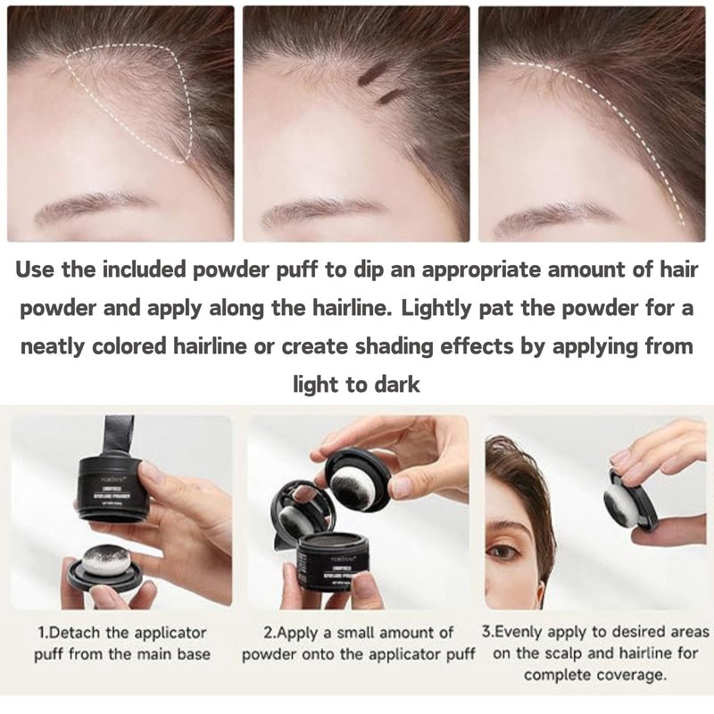 - 【Easy to use】: Use the included powder puff to dip an appropriate amount of hair powder and apply along the hairline. Lightly pat the powder for a neatly colored hairline or create shading effects by applying from light to dark