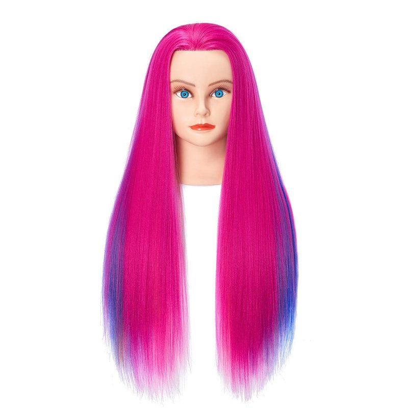 Hairlink 26-28'' Mannequin Head Yaki Synthetic Fiber Hair Styling Training Head Dolls for Cosmetology Manikin Maniquins Practice Head with Stand (6611W0320)