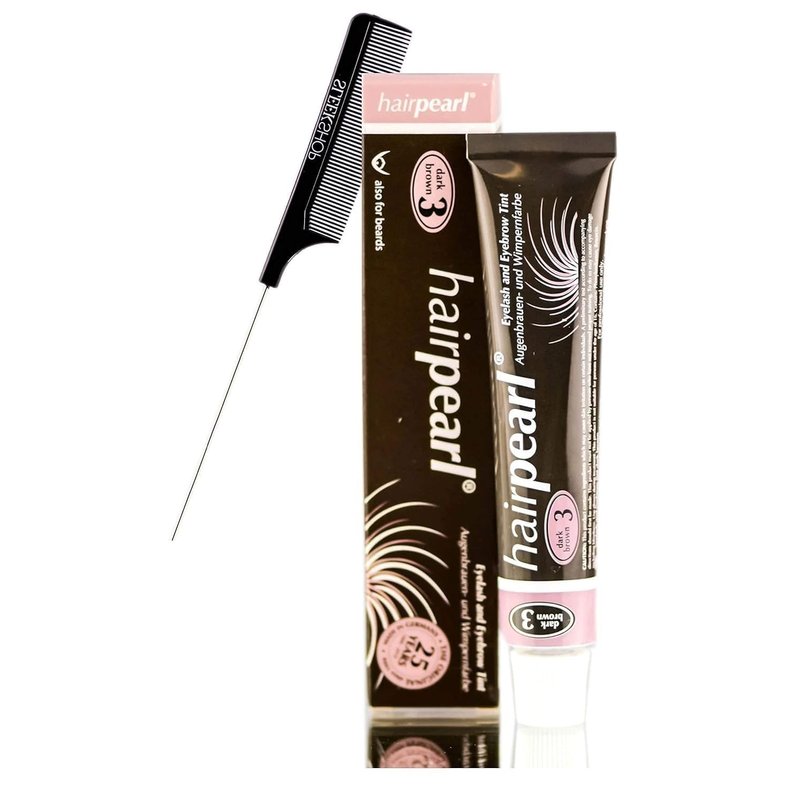 Hairpearl Original Hair Pearl TINT Color Dye for Iashes and broows (w/Sleek Steel Pin Rat Tail Comb) PPD-Free Haircolor Hair Tinting, Made in Germany (No 3 Dark Brown)