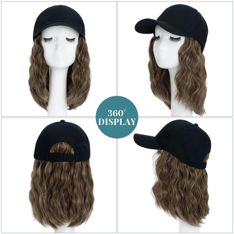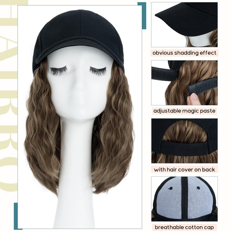 - ★ Hairro baseball cap with hair attached for women, cute short bob style with wavy texture hair,looks fuller and buncy. Made with high quality synthetic fiber, comfortable and silky soft, as natural as human hair
