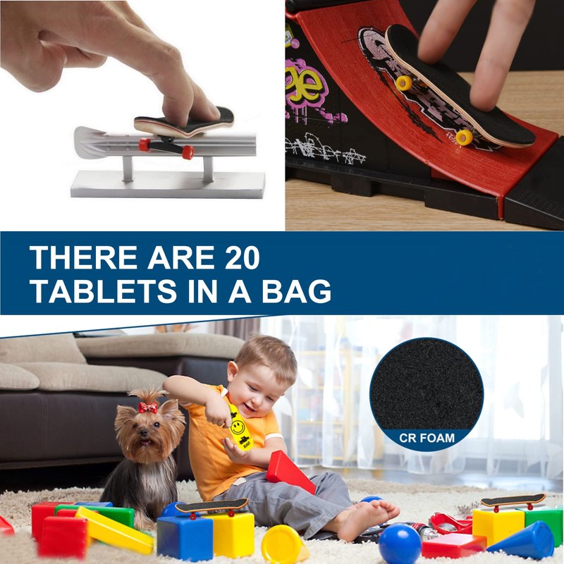 Haisalin 20Pcs Fingerboard Grip Tape, Precut Fingerboard Foam Grip Tape,Foam Grip Tape for Fingerboards, Precut & One Step Instal(20)