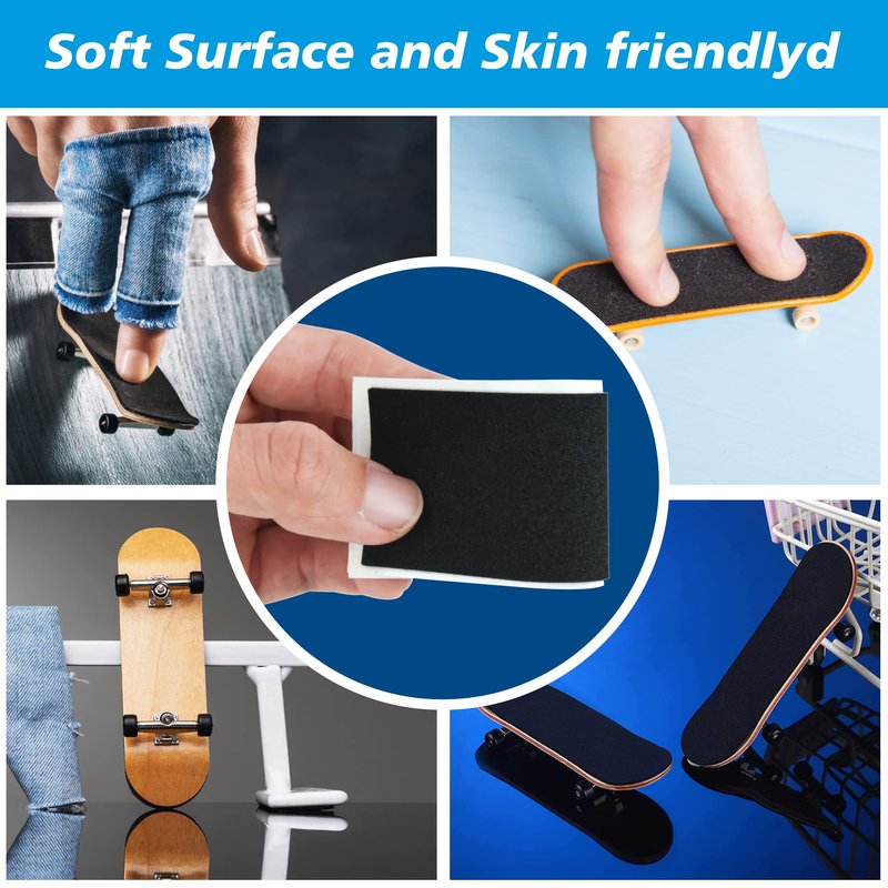 - 【PROPER SIZE】:Each finger skateboard tape is 110mm long,38mm wide, and 1.12mm thin, you can cut freely, suitable for most fingerboards.