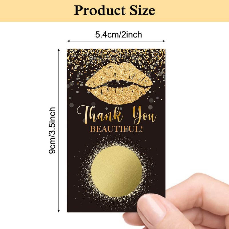 Haizct 50 Pack Thank You Blank Gift Certificate Scratch Off Cards for Small Business, Spa Beauty Makeup Hair Salon, Bridal Shower, Baby Shower, Country Wedding (Golden lip gloss)-GK095