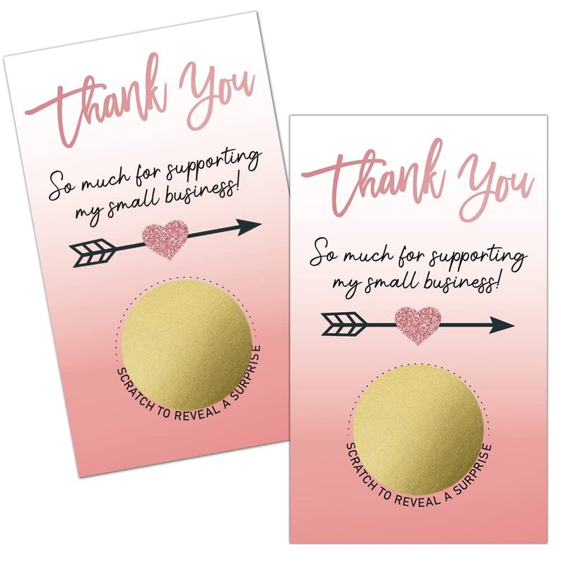 Haizct 50 Pack Thank You Blank Gift Certificate Scratch Off Cards for Small Business, Spa Beauty Makeup Hair Salon, Bridal Shower, Baby Shower, Country Wedding (Thank You CardD), Gold-GK089