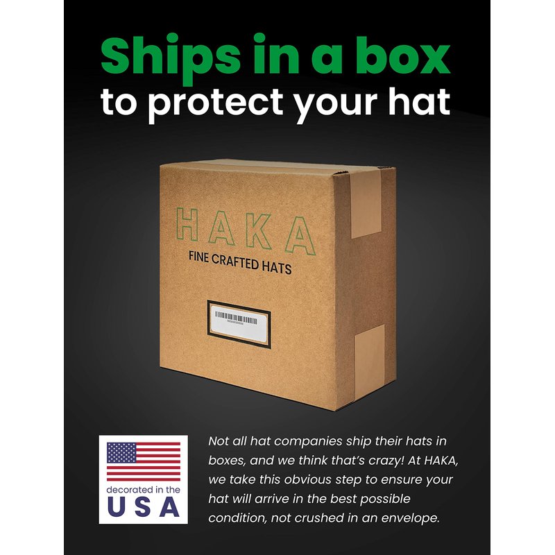 Haka Hat Sasquatch hat: Logo is embroidered on the hat. Premium quality - 6 panels (2 front panels, 4 mesh back panels). 65% polyester and 35% cotton front and bill. 100% polyester mesh. If you don’t love this hat, return it and we’ll provide a full refund.
