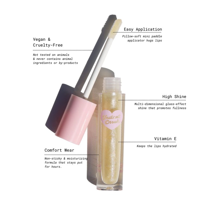 Fuller, hydrated lips in a tube. Our Instant Crush lip gloss will give you the extreme shine you're craving. Formulated with nourishing ingredients like vitamin E and jojoba oil, our lip gloss not only provides a stunning glossy finish but also keeps your lips hydrated and smooth throughout the day. Crafted with precision and passion, our lip gloss is available in a mesmerizing array of 11 shades, ensuring there's a hue for every mood and occasion. From subtle tints to dazzling shimmers, Half Caked has curated a collection that caters to all your lip color desires.