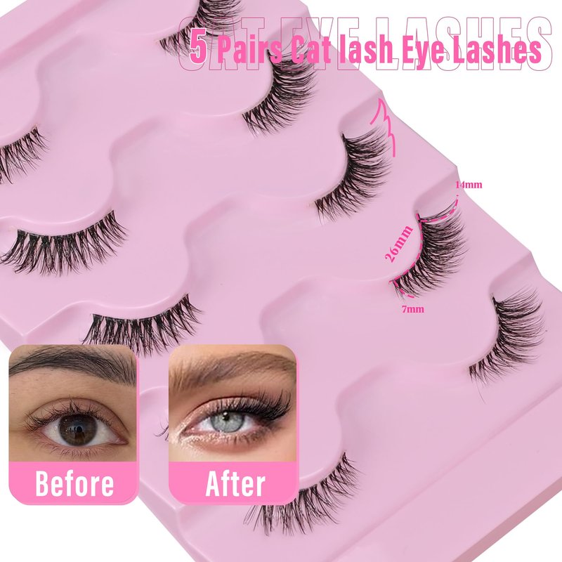 - 【Clear Band Natural Lashes】Wispy fluffy lashes have shorter inner corners and longer ends, creating an alluring cat eye look. Clear band is soft that you can layer on top of your natural lashes or other fake lashes for the satisfying volume