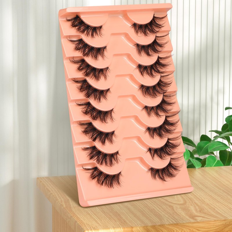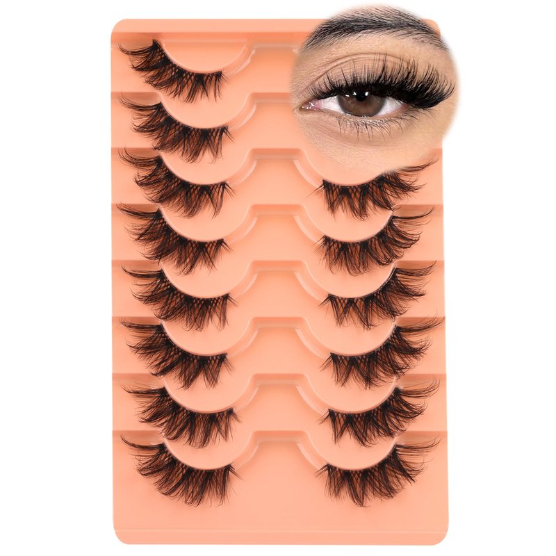 Half Lashes Fluffy False Eyelashes Cat Eye Lashes Mink Wispy Thick Fake Eyelashes 3/4 Corner Lashes with Clear Lash Band by Zegaine 8 Pairs Natural Lash Pack