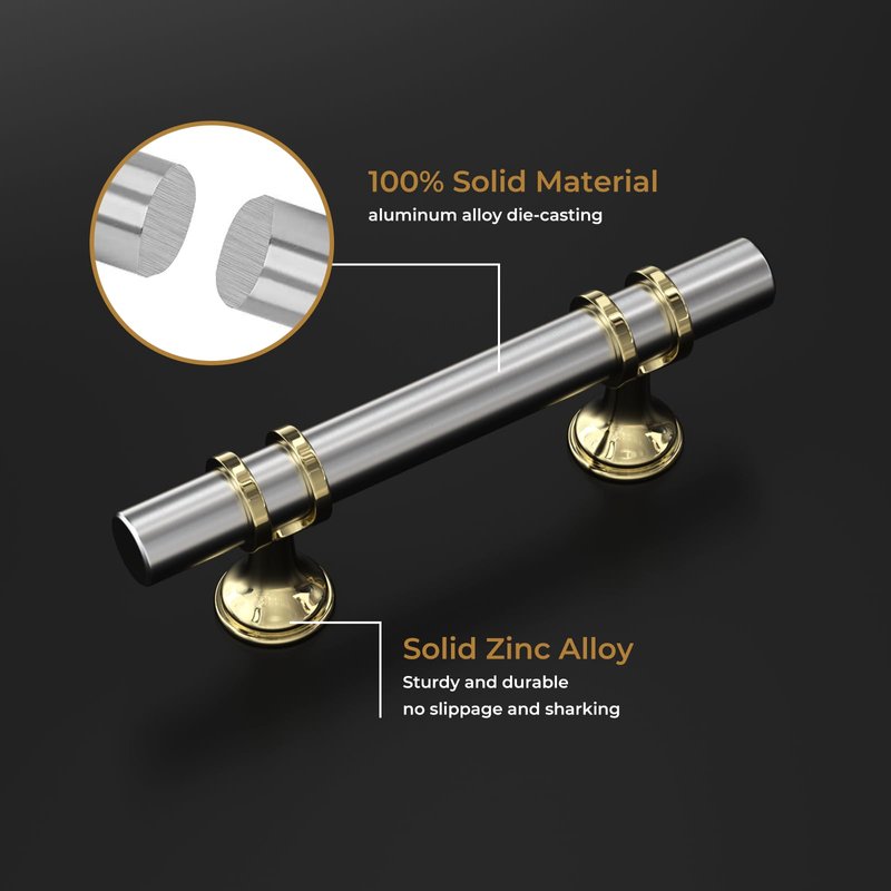 - 【Material】: all the Cabinet Pulls are Made of 100% Solid Material, the handle's base is Zinc alloy, and the handle is Aluminum alloy. It is Durable & Strong, You Can Use it for a Long Time;