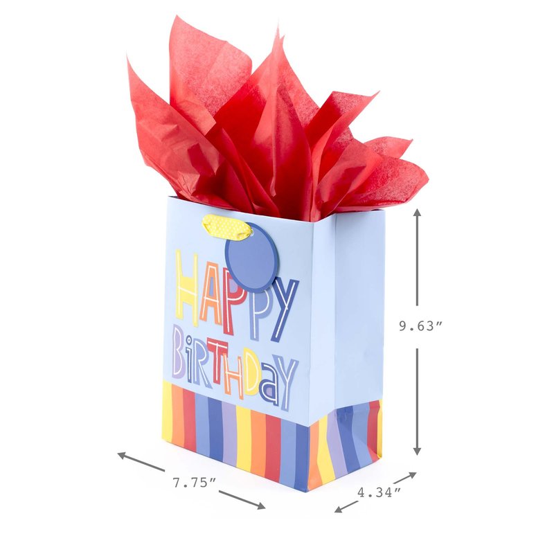 Hallmark 9" Medium Gift Bag with Tissue Paper (Happy Birthday, Rainbow Stripes on Light Blue)