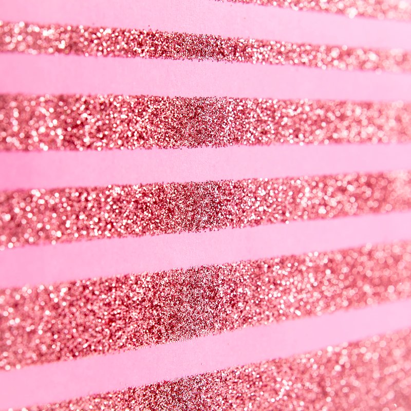 - Elegant gift bag features an all over light pink design, accented with pink glitter stripes. Pink grosgrain ribbon handles, a sparkly gift tag, and two sheets of pink tissue paper complete the package.