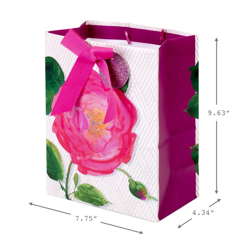 Hallmark 9" Medium Gift Bag with Tissue Paper (Pink Rose) for Valentines Day, Birthdays, Bridal Showers, Weddings or Any Occasion
