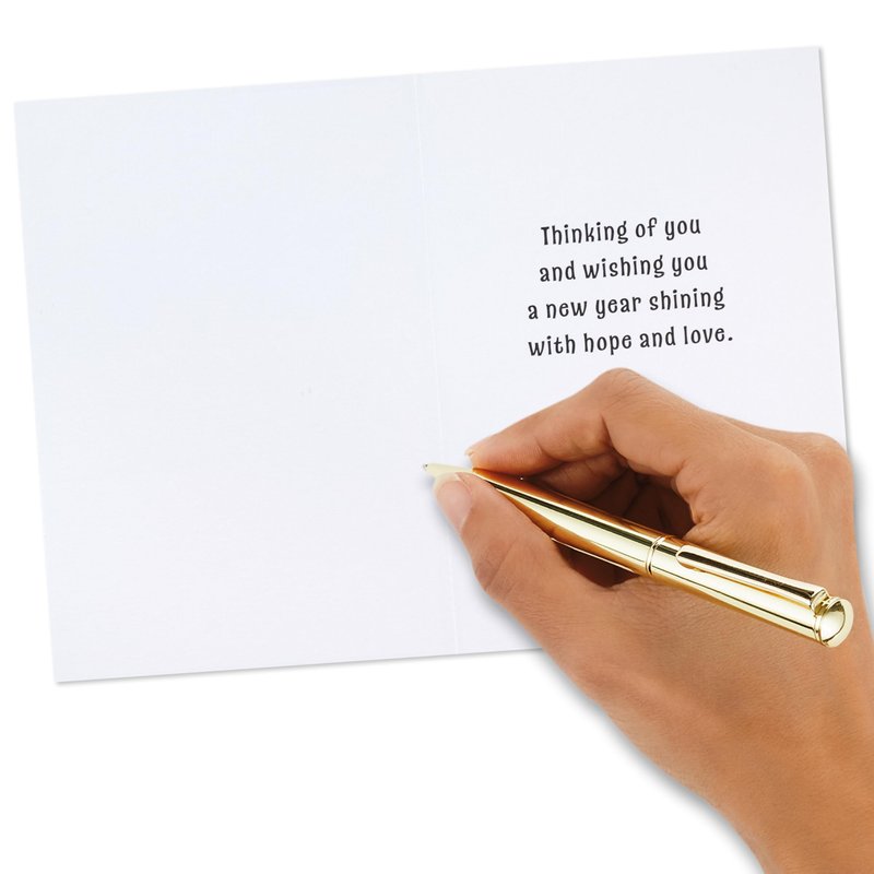 - Inside reads: "Thinking of you and wishing you a new year shining with hope and love."