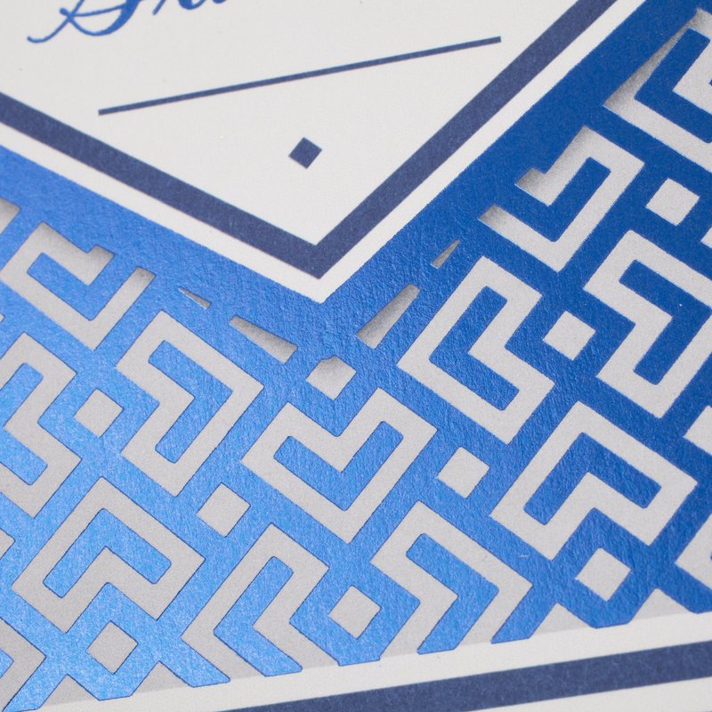 - Graduation card pack includes ten cards in a single design featuring a geometric pattern accented with blue and silver foil. Inside reads: "May your graduation be just the start of a future that brings all the wonderful things you deserve."