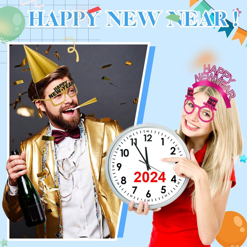 - Eye Catching Design: equipped with [Happy New Year] design in vibrant colors of blue, gold, green, purple, red, and a rose red flashing headdress, our happy new year props are bound to be the center of attention; The colorful eyeglasses are crafted to add more fun to your New Year party
