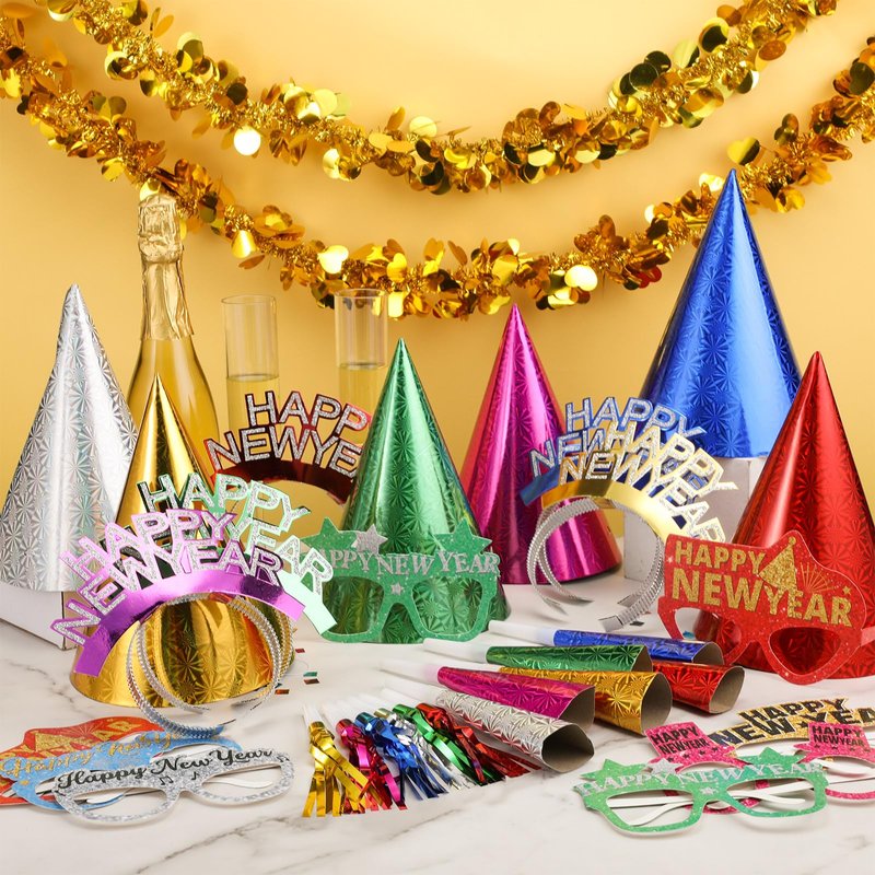 - Reliable Material: our happy new year decorations 2025 are crafted with dependable materials; The party cone hats are made from exquisite laser paper, while the horns are crafted from plastic; They are designed to withstand rigorous use and maintain their shape and color, ensuring your party is always vibrant and exciting, providing a clear and loud sound without deformation; And eyeglasses are made of thick cardboard, suitable for most people