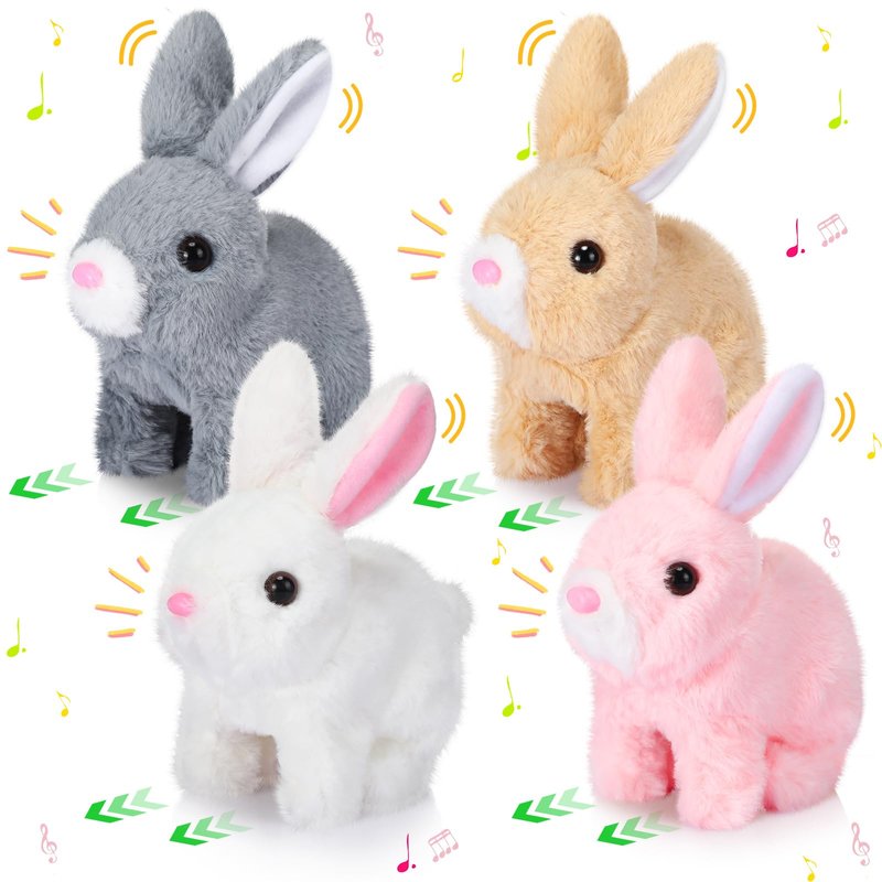 - Electric Plush Bunny Toy Set: this interactive toy set contains four endearing plush electronic rabbits in 4 colors: white, gray, Mocha and pink; At 7 inches long, these charming bunnies are suitable for encouraging cognitive and creative skills in little ones