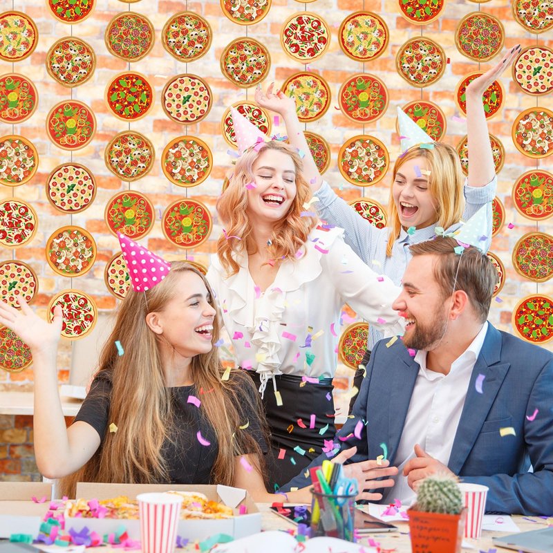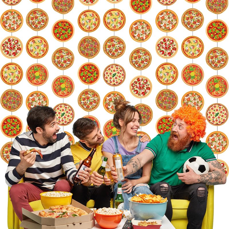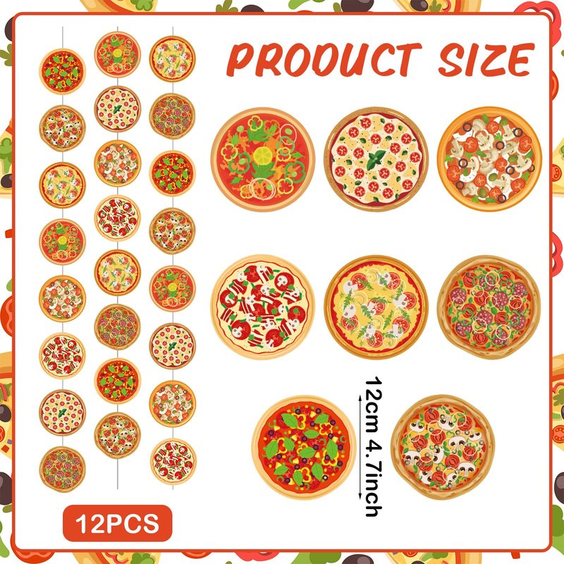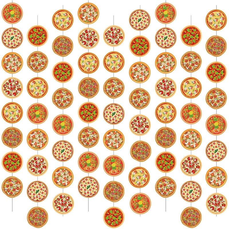 - Pizza Party Decorations: you will get 12 pizza hanging strings, providing you with ample quantities to decorate various areas; Each string has 8 pizza cutouts with different styles on it; Whether you're hosting a large event or want to spread the pizza theme throughout multiple rooms, this package ensures you have enough decorations for your needs