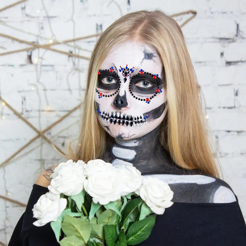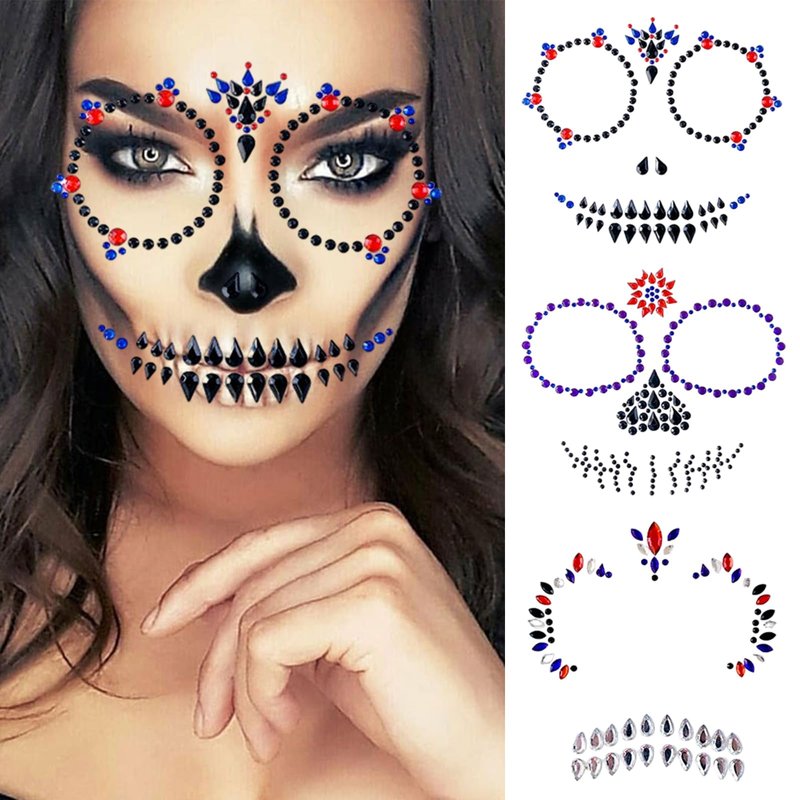 Halloween Face Gems Jewelry Temporary Tattoo Stickers Women and girls Holiday rave party Rhinestone Crystal art makeup supplies Decorative accessories