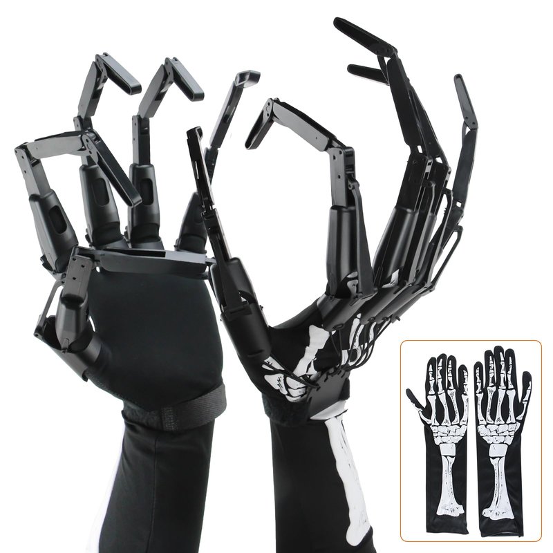 Halloween Articulated Fingers with Protective Gloves, Articulated Finger Extensions, Scary Skeleton Bone Claw Hand, Halloween Props Finger Claws, Fits Most Fingers Sizes, Black