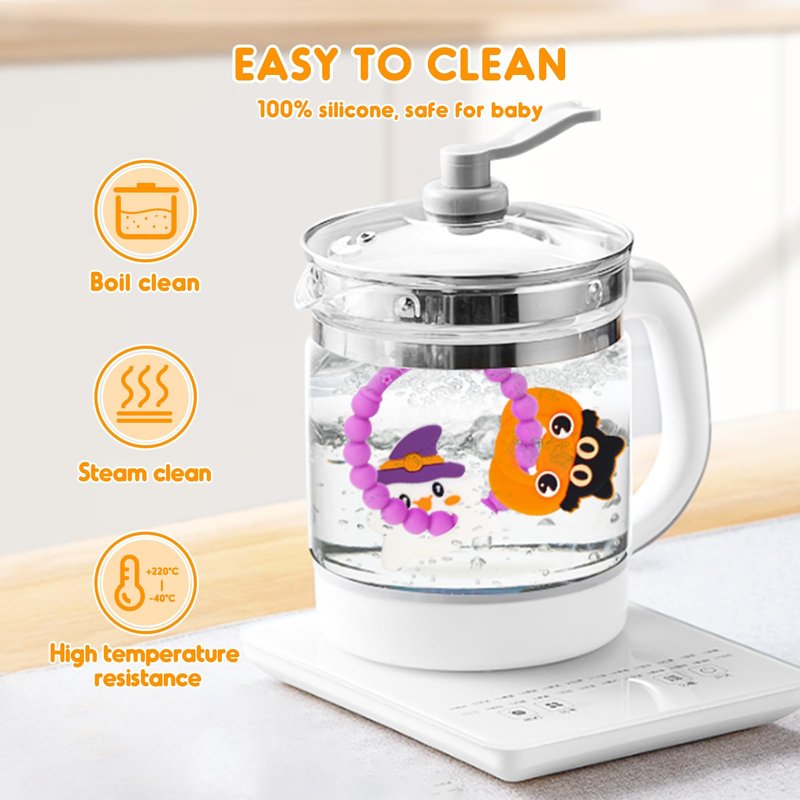 - 🧡 Easy to Hold & Chew: This Halloween teether is thoughtfully crafted with soft, rounded silicone beads and a hollow center, making it easy for babies to grasp with their tiny hands. The ergonomic design ensures your baby can hold and chew it comfortably, providing relief to sore gums. The ghost and bat shapes engage your baby’s senses, turning teething into a fun and soothing experience, perfect for little ones learning to explore the world through touch and taste.