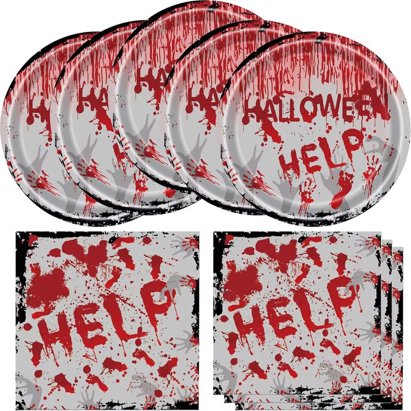 Halloween Bloody Party Supplies, Halloween Party Plates and Napkins, 20 Plates and 20 Napkins, Halloween Scary Hand Print Party Decorations