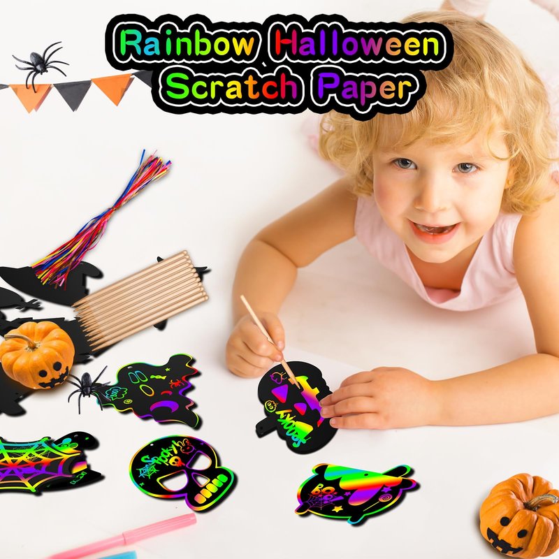 - Safe & High-Quality Materials: Made with premium paper and wooden styluses, our rainbow scratch paper set meets toy safety standards. Non-toxic and durable, it's perfect for kids of all ages to enjoy Halloween crafting and games with peace of mind. Halloween craft supplies halloween craft toddler halloween craft for kids 8-12 halloween craft for kids halloween craft kits for classroom halloween craft kits for kids ages 4-8 halloween craft kits for kids ages 5-7 kids halloween craft kits.