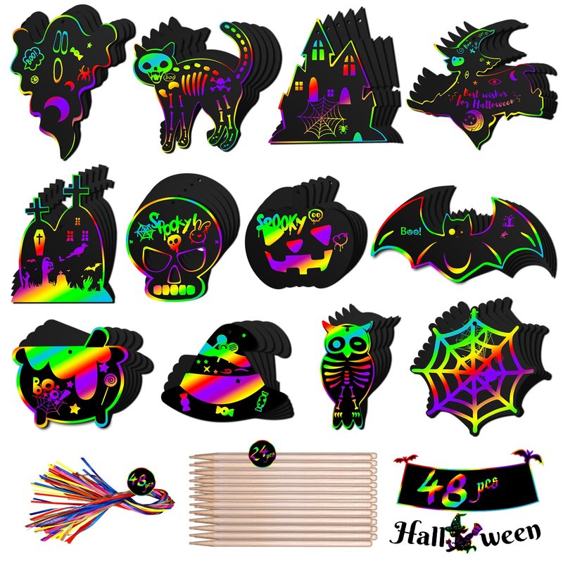 - DIY Craft Kits for Kids: Discover vibrant colors and hidden patterns beneath the black surface of our scratch paper. Use the wooden styluses to scratch away and reveal your masterpieces. Let your imagination soar as you create amazing Halloween-themed designs! Halloween crafts for kids 3-5 halloween crafts for kids ages 8-12 halloween crafts for kids ages 4-8 diy halloween crafts halloween crafts for kids bulk toddler halloween crafts halloween crafts bulk halloween crafts bulk classroom.