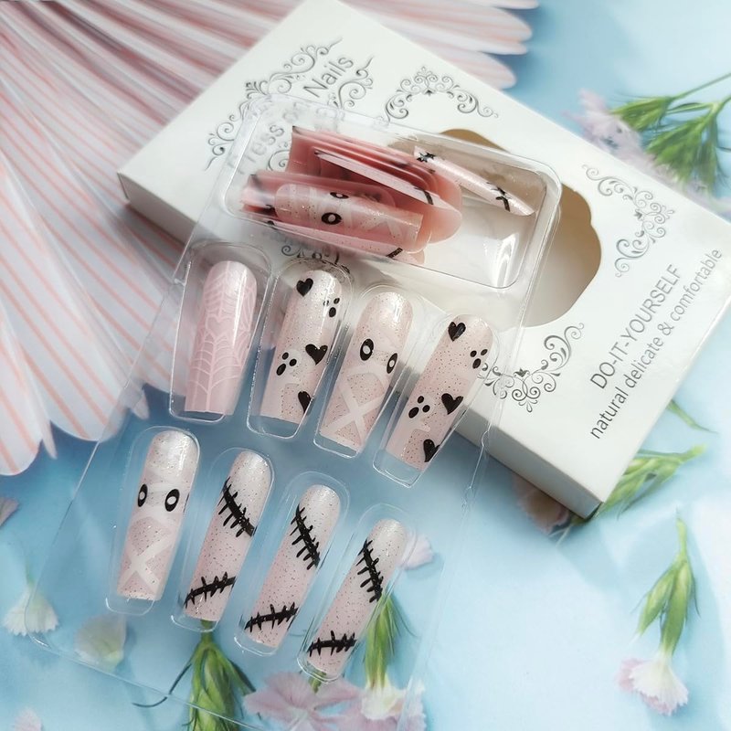 - Stay Daily Beautiful: Halloween long press on nails use holiday style, with fashion, cuteness and simple operation allow you to do your own nail art at home, provides your nails an excellent and charming look