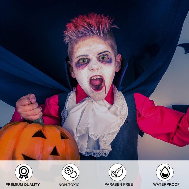 - Perfect for Halloween Makeup and More: Perfect for Halloween Makeup, Day of the Dead Makeup Set, Costume Makeup, Stage Makeup, Vampire Makeup, Zombie Face Paint, School & Church Events, Festivals, Birthday Parties, Party Favors, Cosplay, Football Events, Prime Sport and all Other Use.