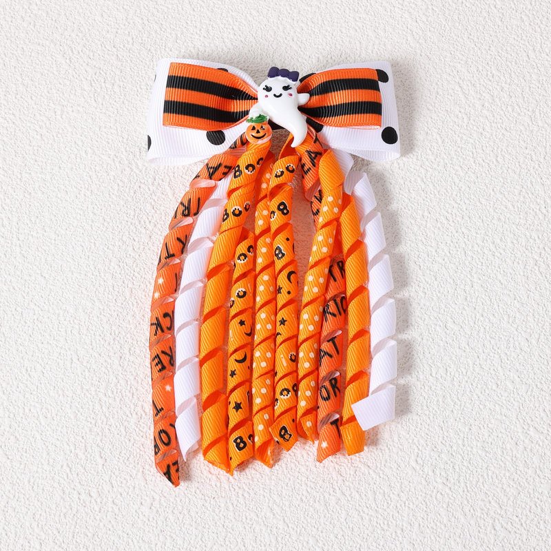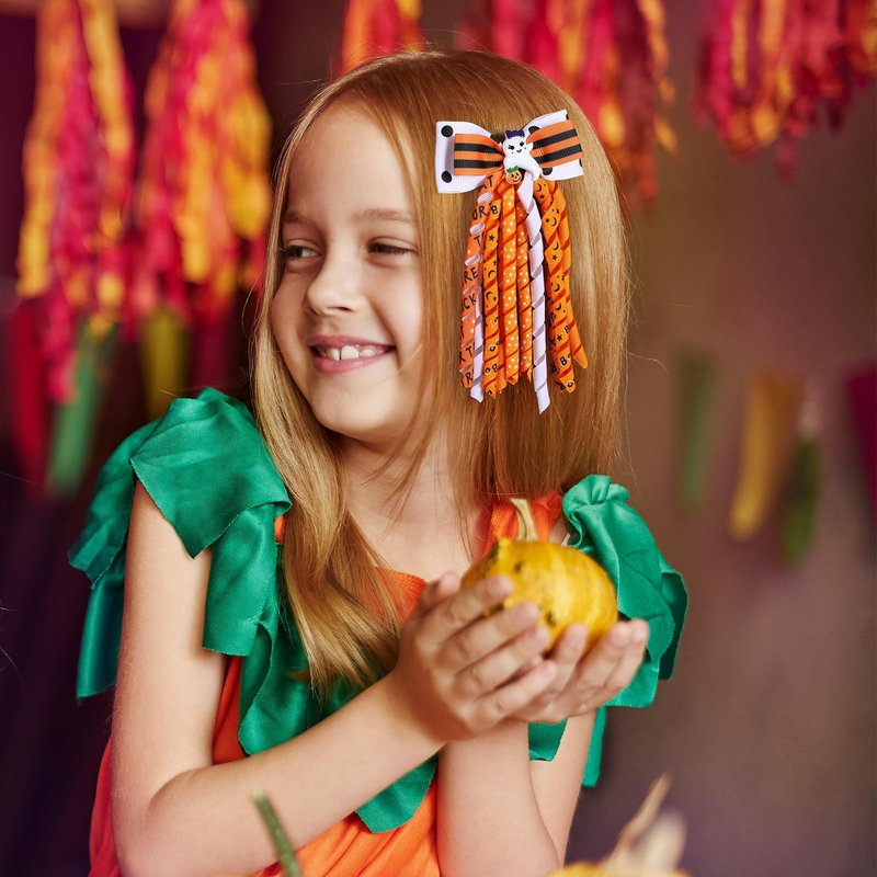 Novelty Halloween Charm: Each hair bow features a playful korker ribbon design with a tail, incorporating festive halloween colors like white,orange, black, and purple. The lively tassels add an extra element of fun and flair to your hairstyle.