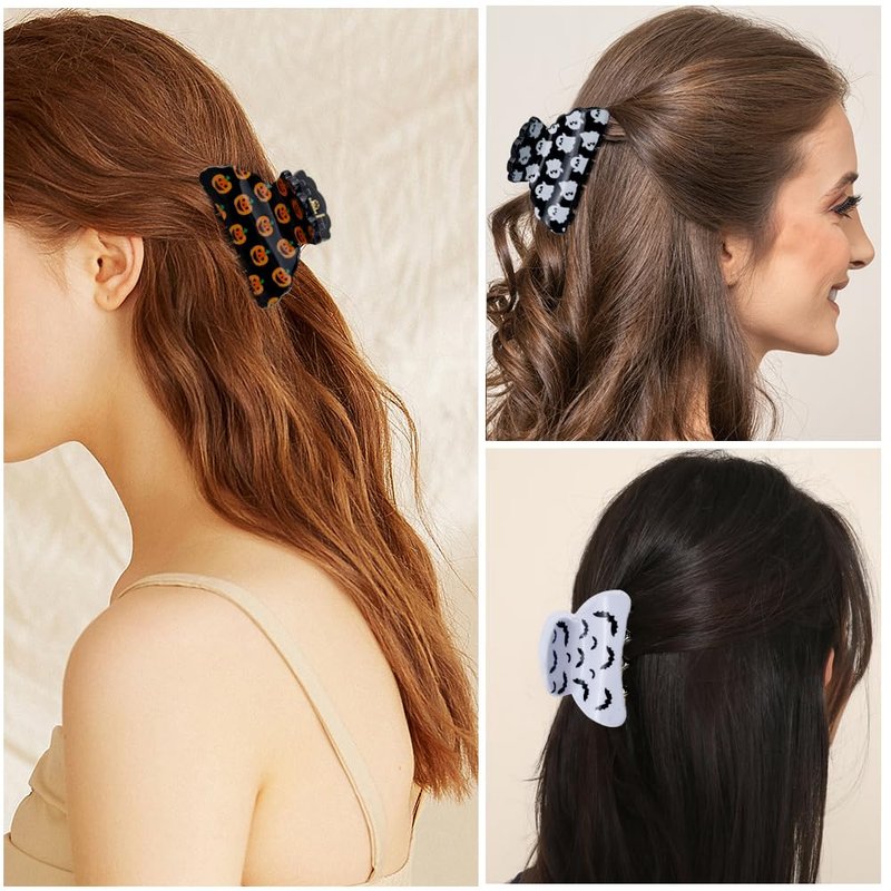 - 【Easy to Use】These Halloween hair claw clips are designed with a strong grip that can securely hold your hair in place. They are easy to open and close, making them convenient to use for both professionals and beginners. Simply twist and slide the clip into your hair for a quick and effortless styling. The non-slip design ensures that your hairstyle stays intact throughout the day.