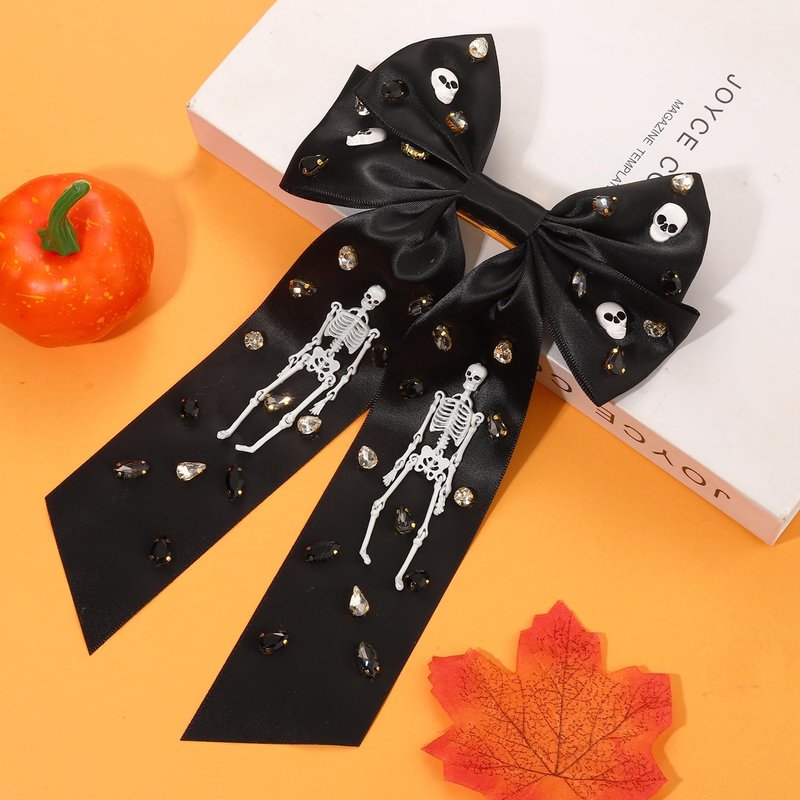 - 【Halloween Outfits Accessories】: Halloween brings out the spirit of magic in just about everyone and there's no better time to celebrate it then the spooky season! Our jeweled long tail Halloween hair ribbons perfect for Halloween party, Thanksgiving, Christmas, cosplay, costume party, display, birthday, events, holiday, themed party, performance, festivals, etc. Harvest admiring glances and enjoy the awe people will have for you and your dark Gothic look with this extravagant spooky hair bow reveling in Halloween's laughter and joy!