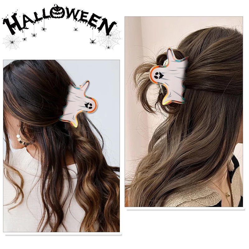 - 【Package Includes】You'll get a exquisite and fashion Halloween hair clips measuring 2.9 * 1.7 * 1.7 inches and featuring a fun white ghosts design, this claw clips is unique and eye-catching, and wearing it is sure to attract everyone's attention