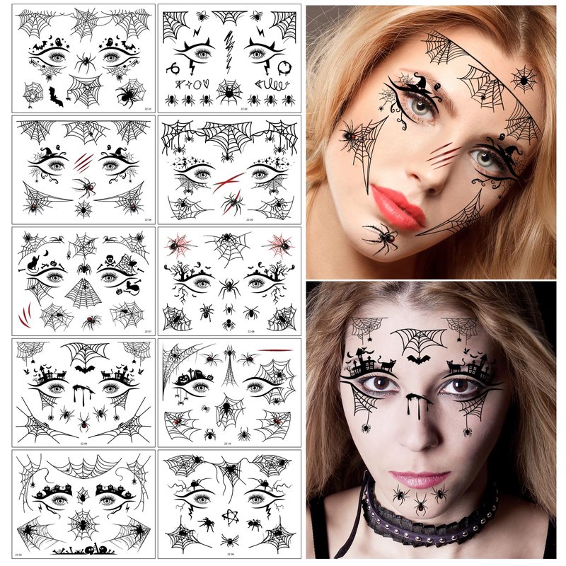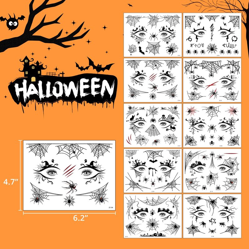 - 10 Sheets Halloween Eye Shadow Temporary Tattoo Stickers