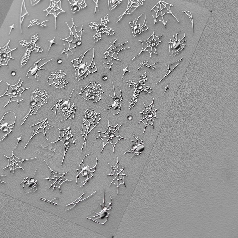 1PC Halloween Nail Stickers 5D Spider Cross Nail Art Decals Self-Adhesive Nail Supplies for Women DIY Manicure Accessories Gift Kit