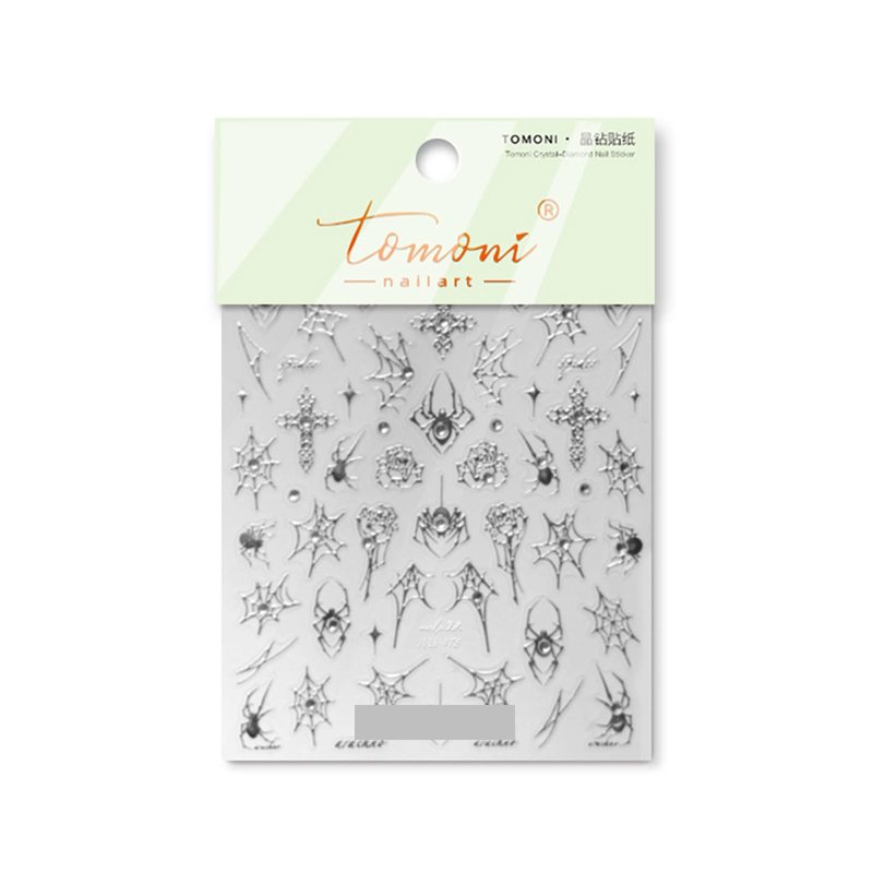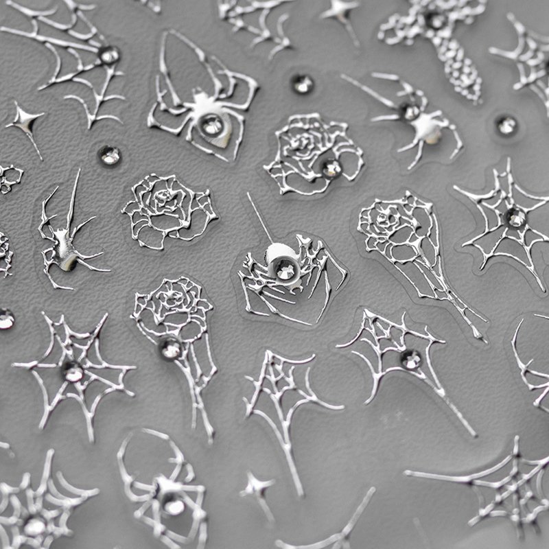 Halloween Nail Art Stickers Spider Web Spiders Nail Art Decals 5D Silver Crystal Diamond Nail Stickers Cross Rose Spider Web Nail Design Supplies Cute Nail Accessories for Acrylic Nails Decorations