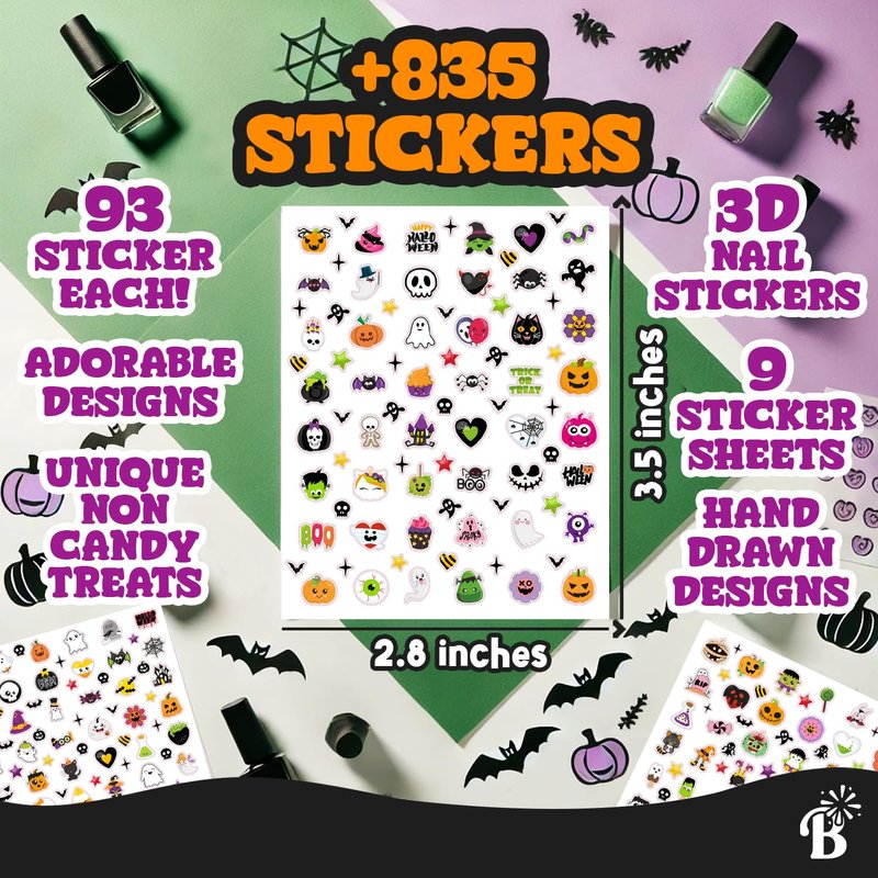 Halloween Nail Stickers+ Cards Non Candy Halloween Party Favors for Girls Treats Bulk, Halloween Goody Bag Stuffers, Halloween Birthday Girl Party Gifts Prizes Trick Girly Halloween Party Supplies