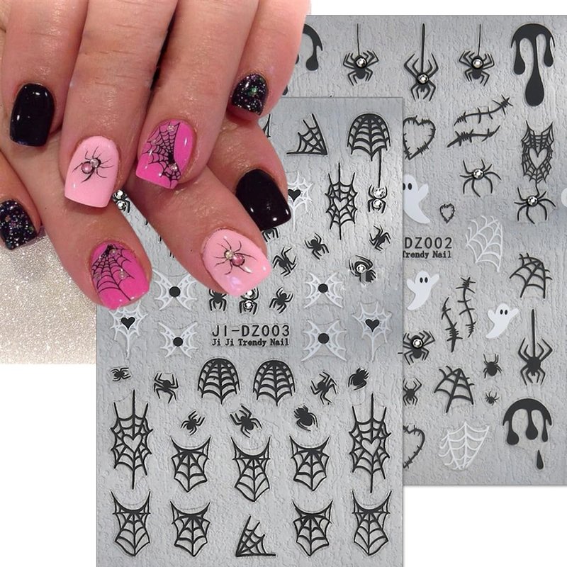 - Style: Spider Pink Ghost Nail Stickers-6
