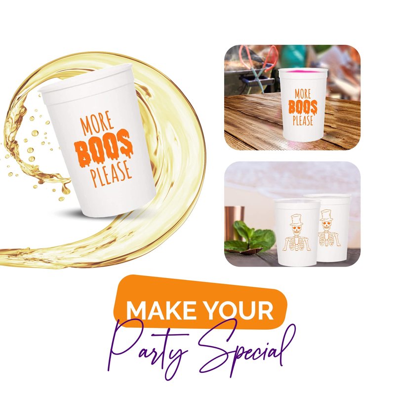 - PERFECT CHOICE- Each cup has a decorative "More BOOS Please" On onside and "Happy Halloween" on the other!